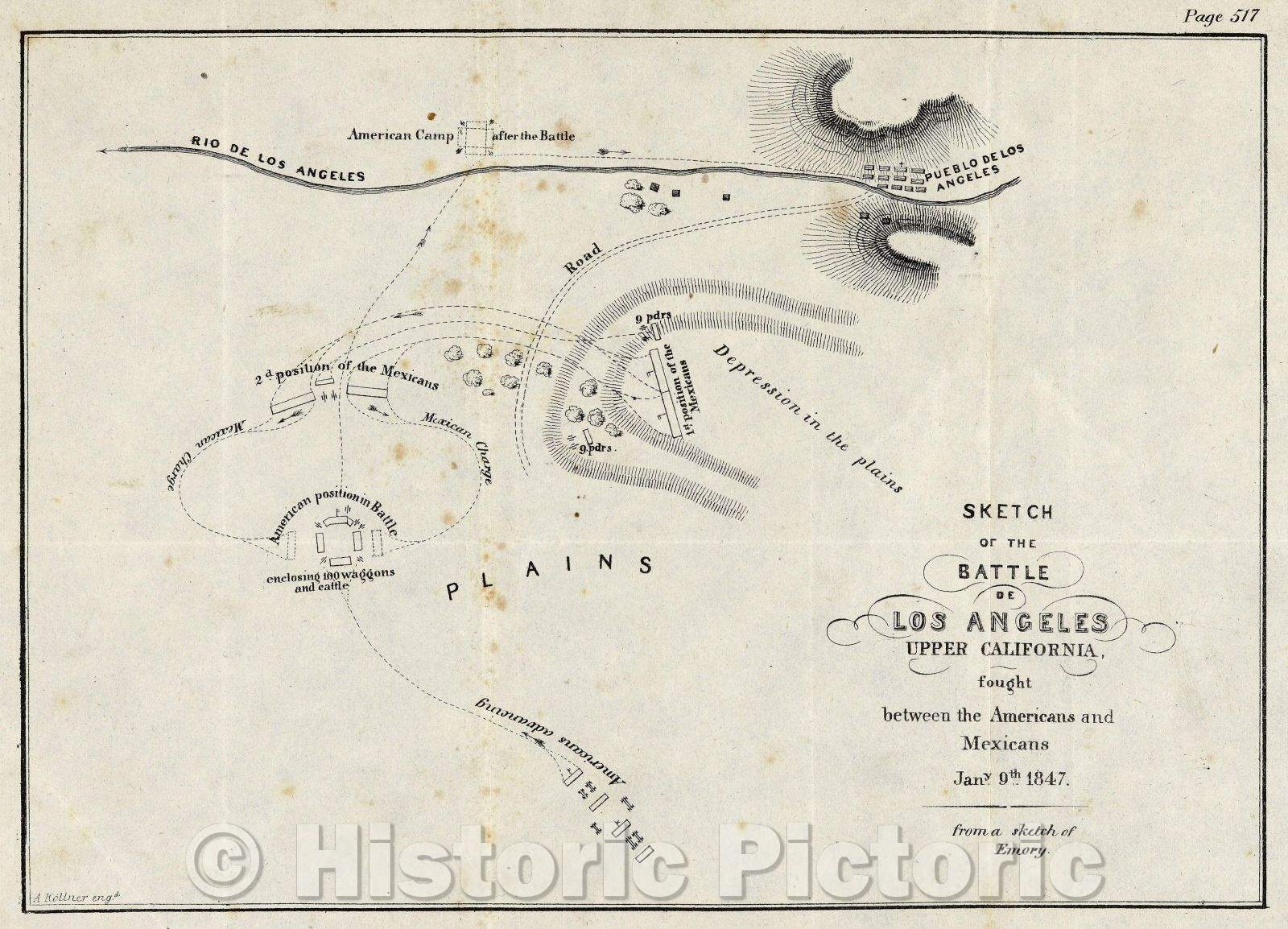 Historic Map : Sketch of the battle of Los Angeles, upper California, fought between the Americans and Mexicans, 1847 , Vintage Wall Art