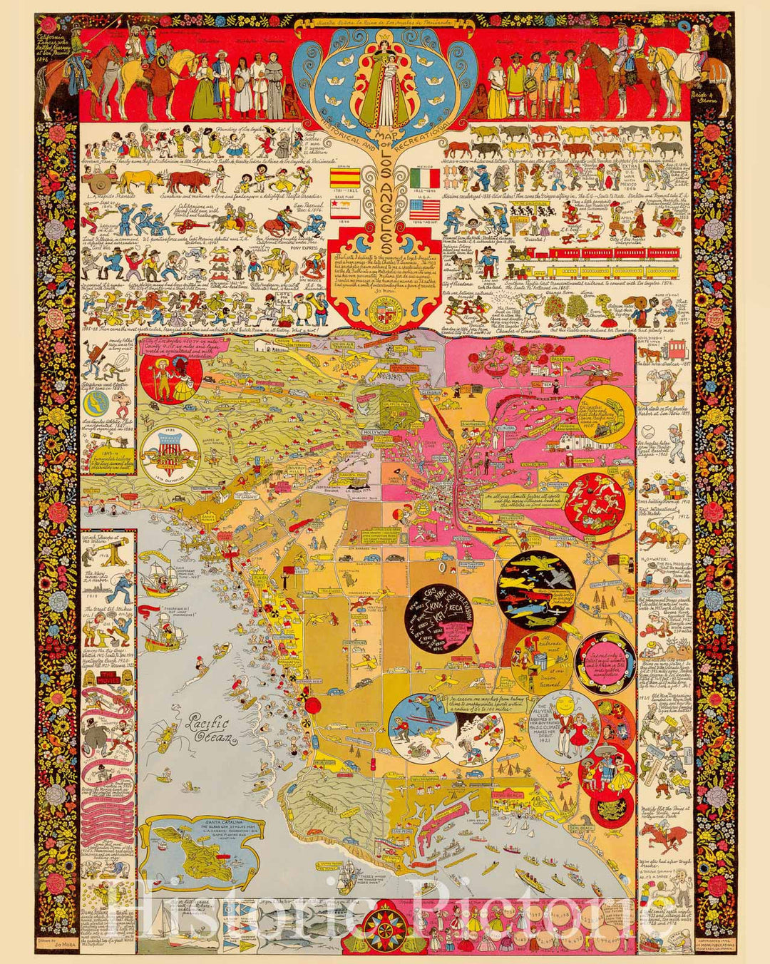 Historic Map - Historical and Recreational Map of Los Angeles, 1942, Jo Mora - Vintage Wall Art