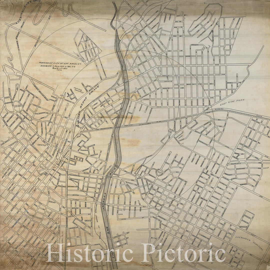 Historic Map - Map of Central Los Angeles - Downtown LA, Elysian Park, Montecito Heights, Boyle Heights, Hollenbeck Park, 1910 - Vintage Wall Art
