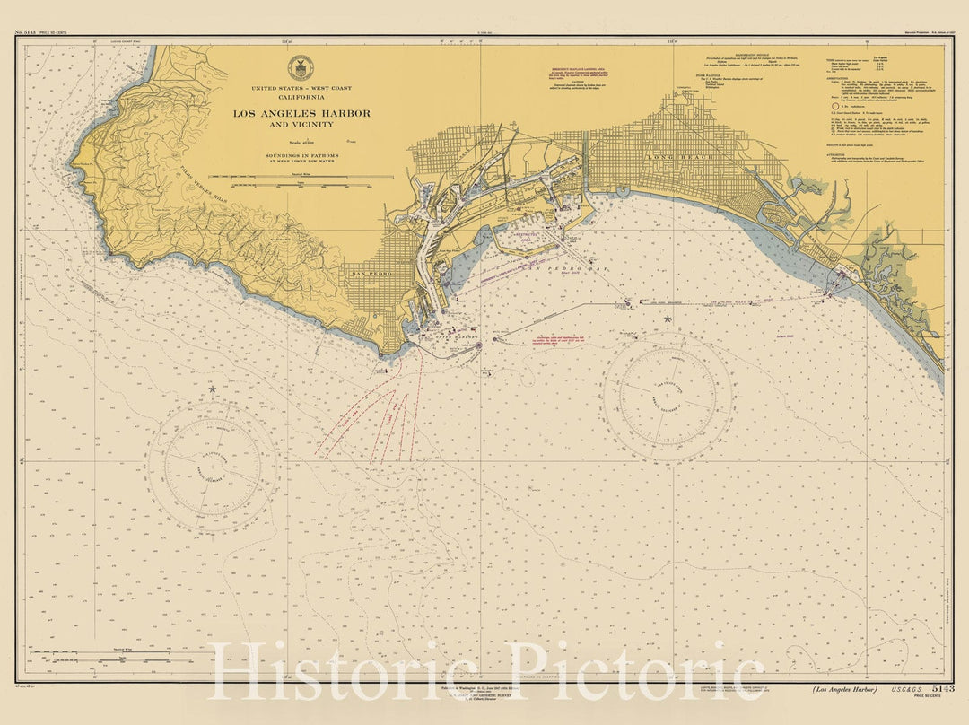 Historic Nautical Map - Los Angeles Harbor, 1948 NOAA Chart - California (CA) - Vintage Wall Art