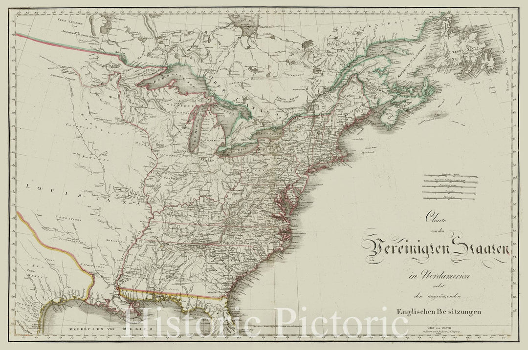 Historic Map - Charte von den Vereinigten Staaten in Nordamerica nebst den angranzenden/Map of the United States, shortly after the Louisiana Purchase, 1809 - Vintage Wall Art