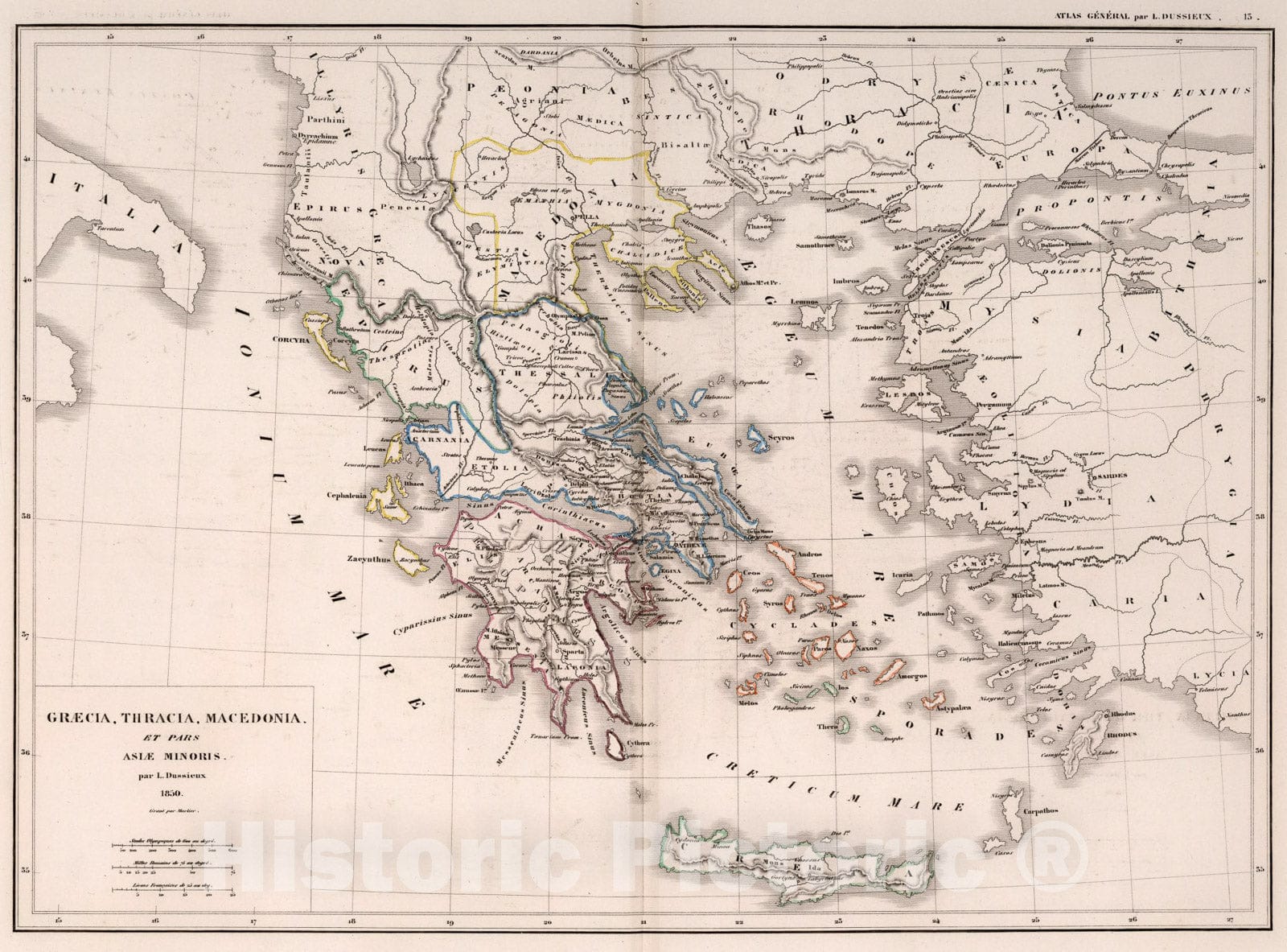 Historic Map : 13. Grecia, Thracia, Macedonia et pars Asie Minoris., 1850, Vintage Wall Art