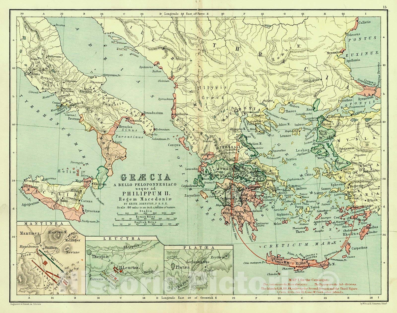 Vintage Map | 1886 Graecia a Bello Peloponnesiaco usque ad Philippum II Regem Macedoniae | Johnston, Keith