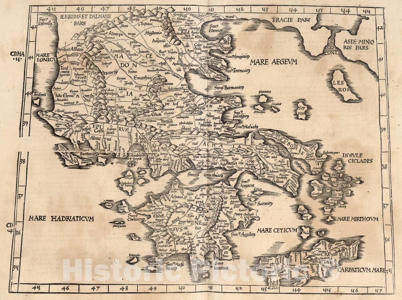 Historic Map : Europae Tabula Decima continet Macedoniam, 1541, Vintage Wall Art