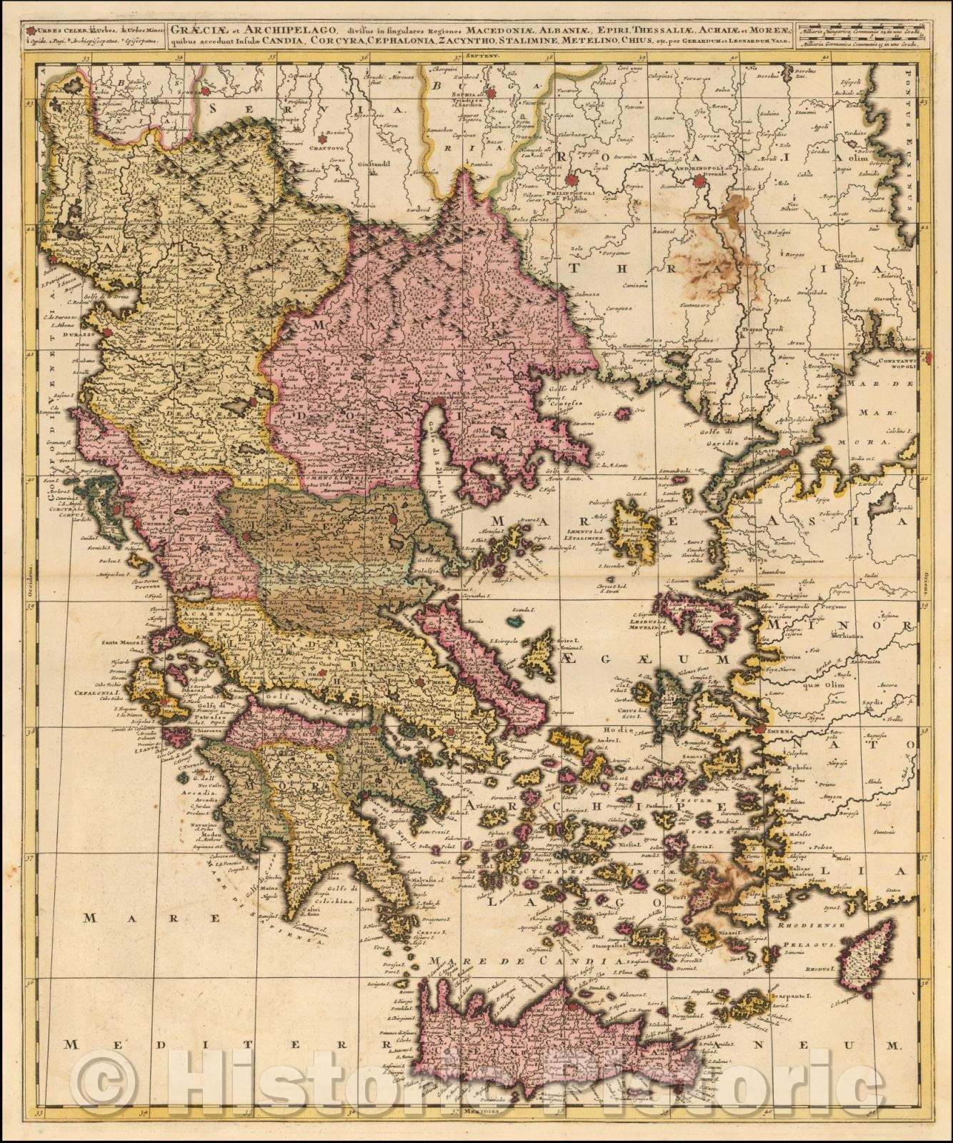 Historic Map - Graeciae et Archipelago, Divisus in Singulares Regiones Macedoniae/Map of Greece and neighboring islands, 1700, Gerard & Leonard Valk - Vintage Wall Art