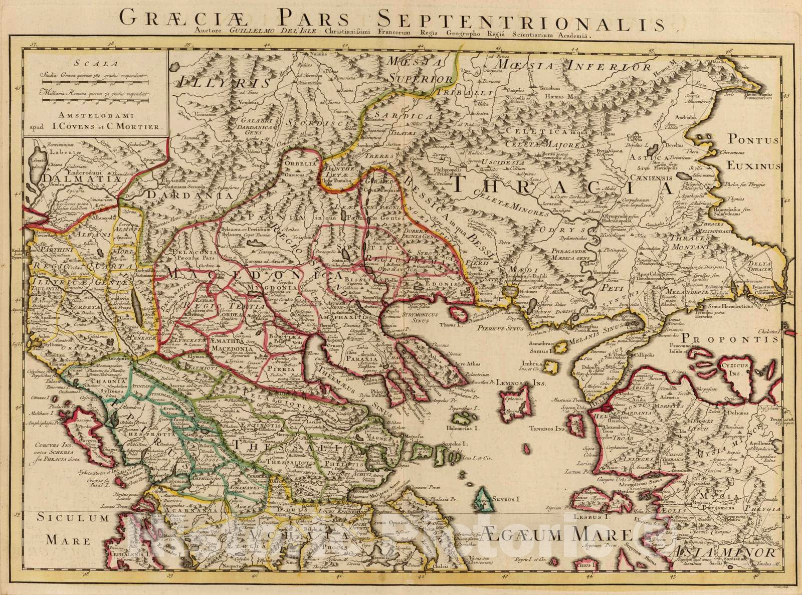 • Historic Map : Greece; Macedonia, Balkan Peninsula 1742 Graeciae pars Septentrionalis. , Vintage Wall Art