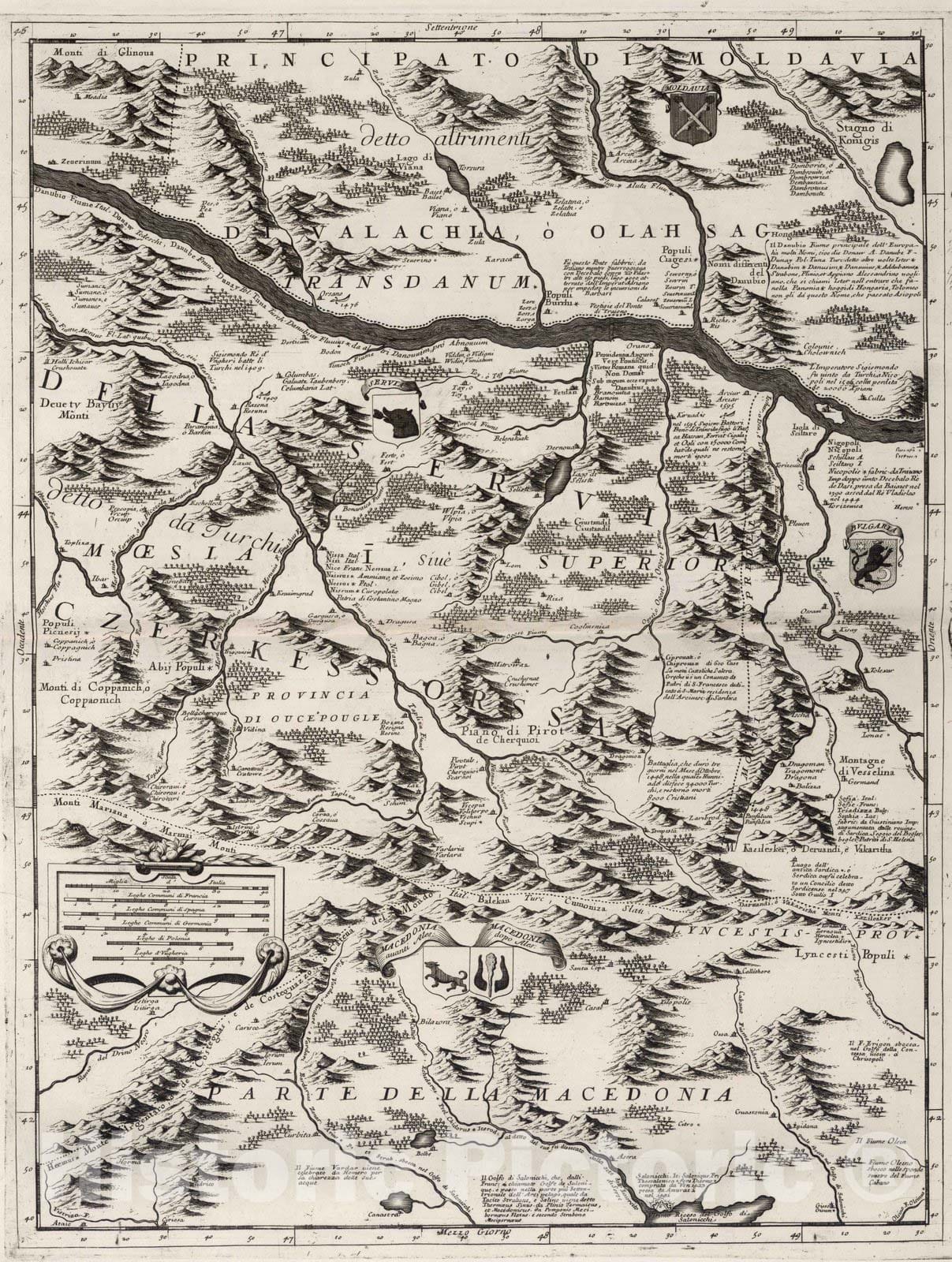 Historic Map : Macedonia, Danube River 1693 Corso del Danubio (3 of 6). , Vintage Wall Art