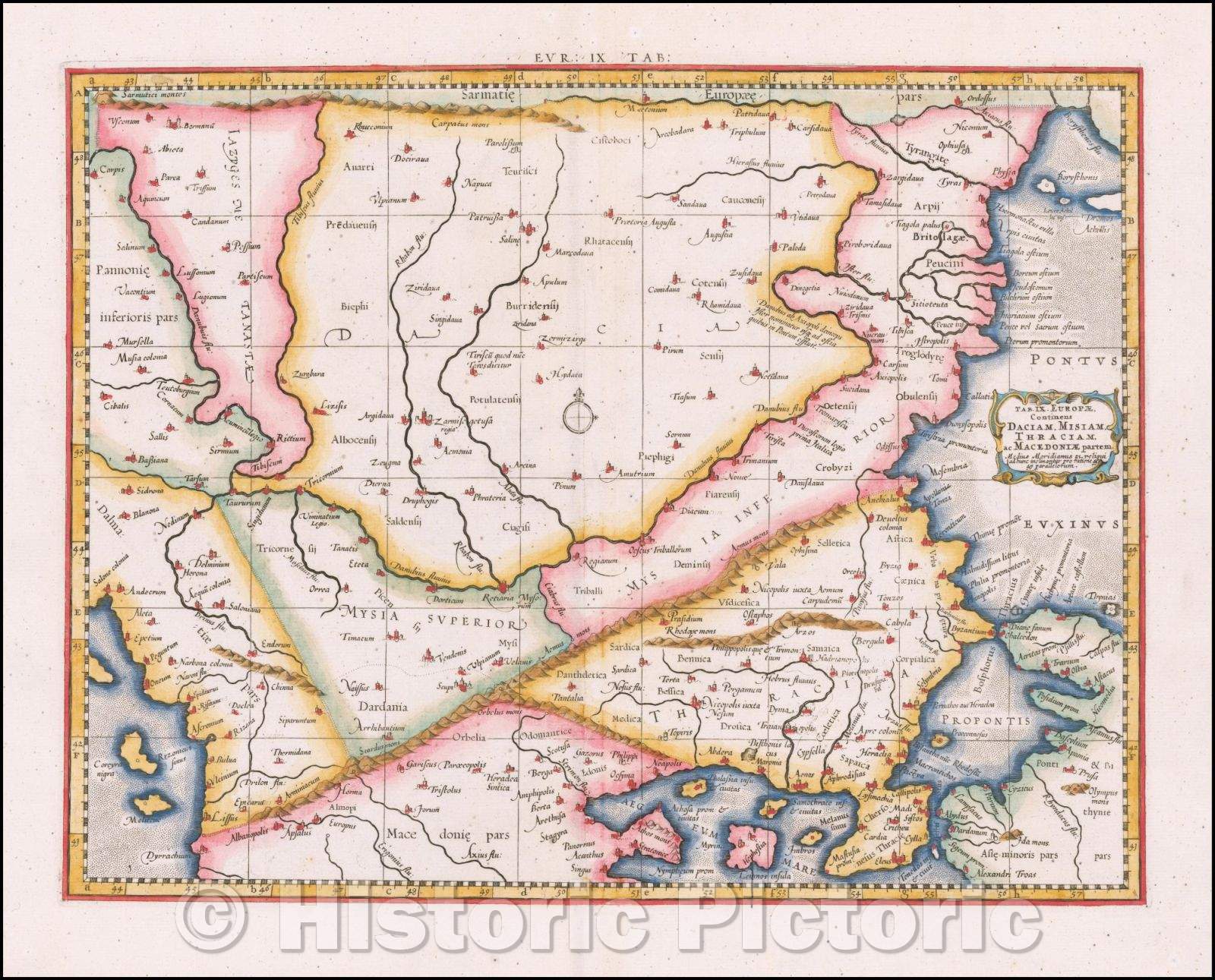 • .Historic Map - Tab. IX. Europae Continens Daciam, Miciam, Thraciam ac Macedoniae partem, 1578, Gerard Mercator - Vintage Wall Art