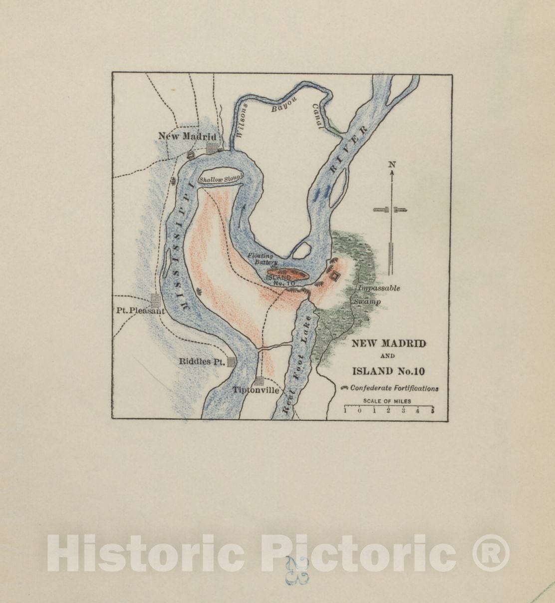 Historic 1914 Map - Campaigns of The American Civil War-Atlas - New Madrid and Island No. 10 - American Civil War Atlas