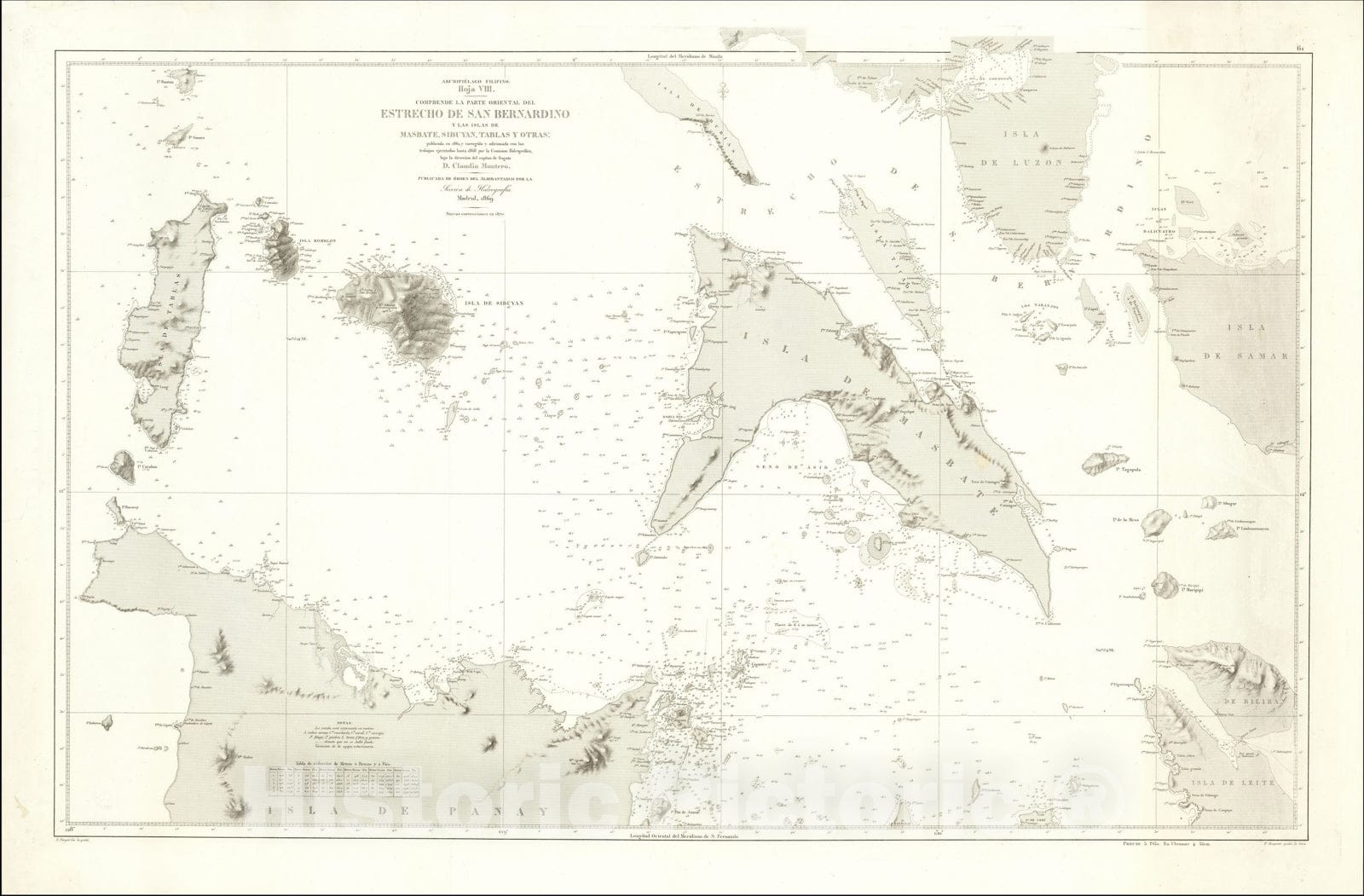 Historic Map : Archipelago Filipino Hola VIII -- Comprende La Parte Oriental Del Estrecho De San Bernardino, 1870, Direccion Hidrografica de Madrid, Vintage Wall Art