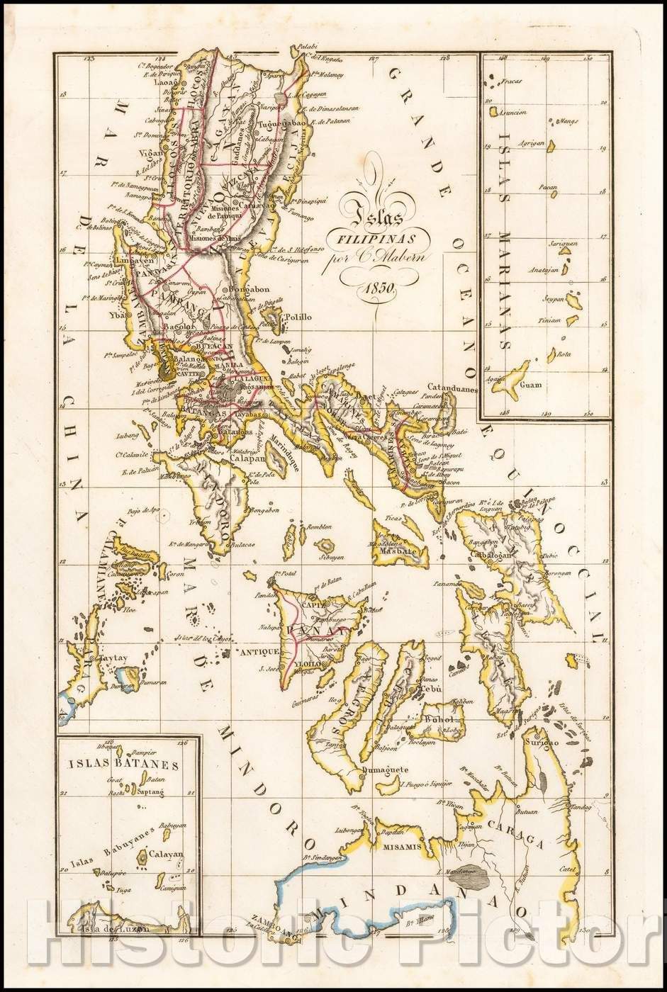 Historic Map - Islas Filipinas por C Alabern 1850 / Map of the Philippines, published by Alabern in Madrid, 1850, Camilo Alabern - Vintage Wall Art