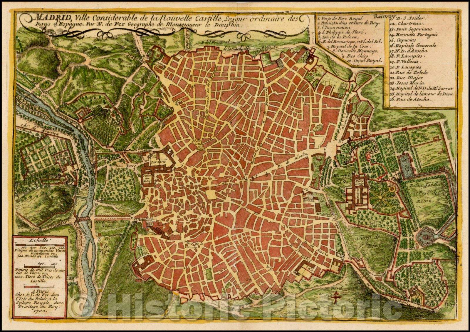 Historic Map - Madrid, ville Considerable de la Nouvelle Castille, 1700, Nicolas de Fer - Vintage Wall Art