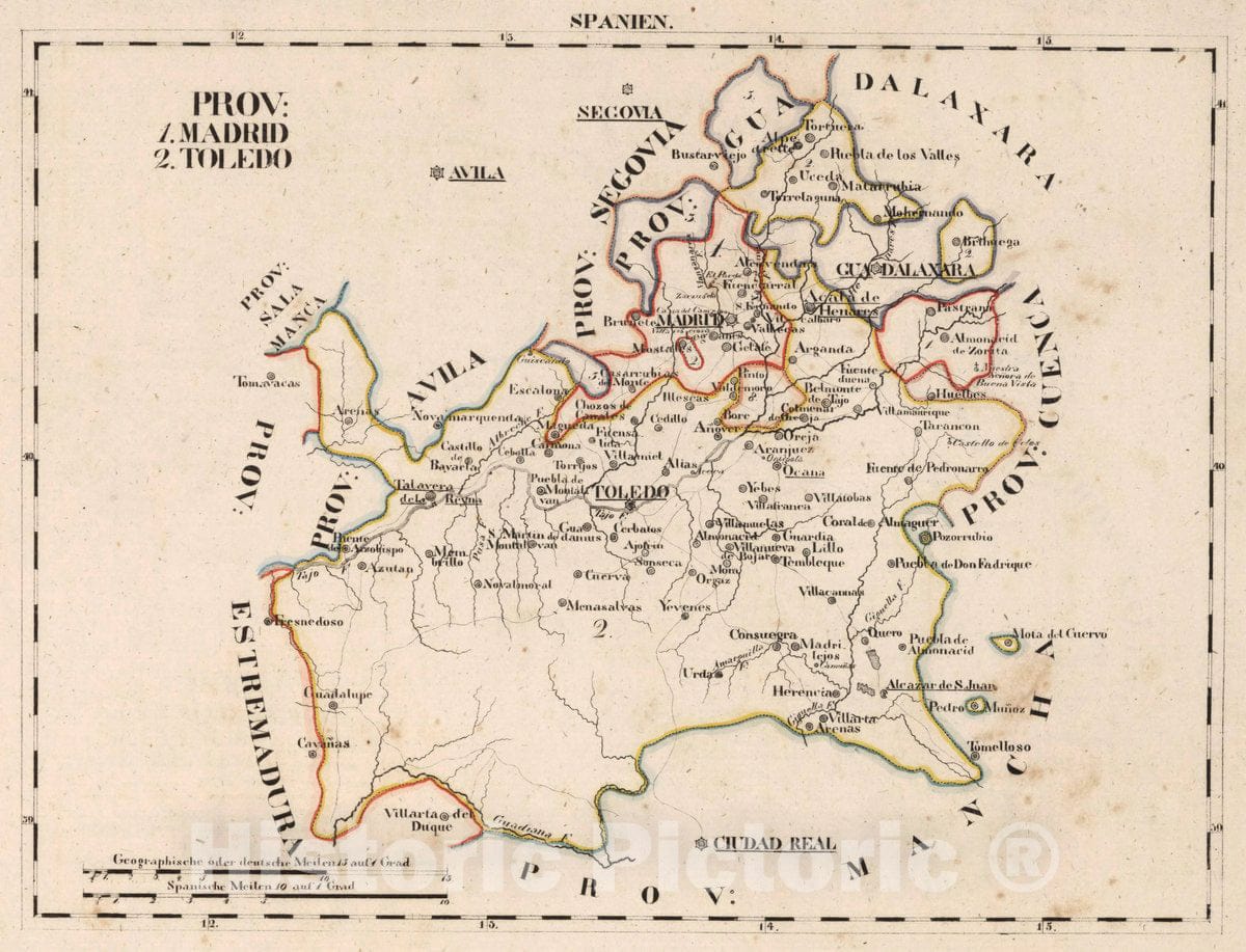 Historic Map : Spain, V.1:1-5: IV: Spanien. Prov: 1. Madrid. 2. Toledo, 1825 Atlas , Vintage Wall Art