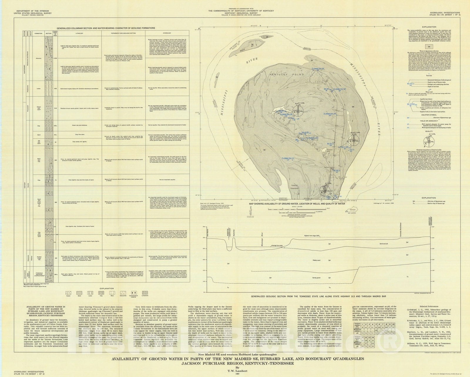 Map : Availability of ground water in parts of the New Madrid SE, Hubbard Lake, and Bondurant quadrangles, Jackson Purchase region, Kentucky - Tennessee, 1967 Cartography Wall Art :