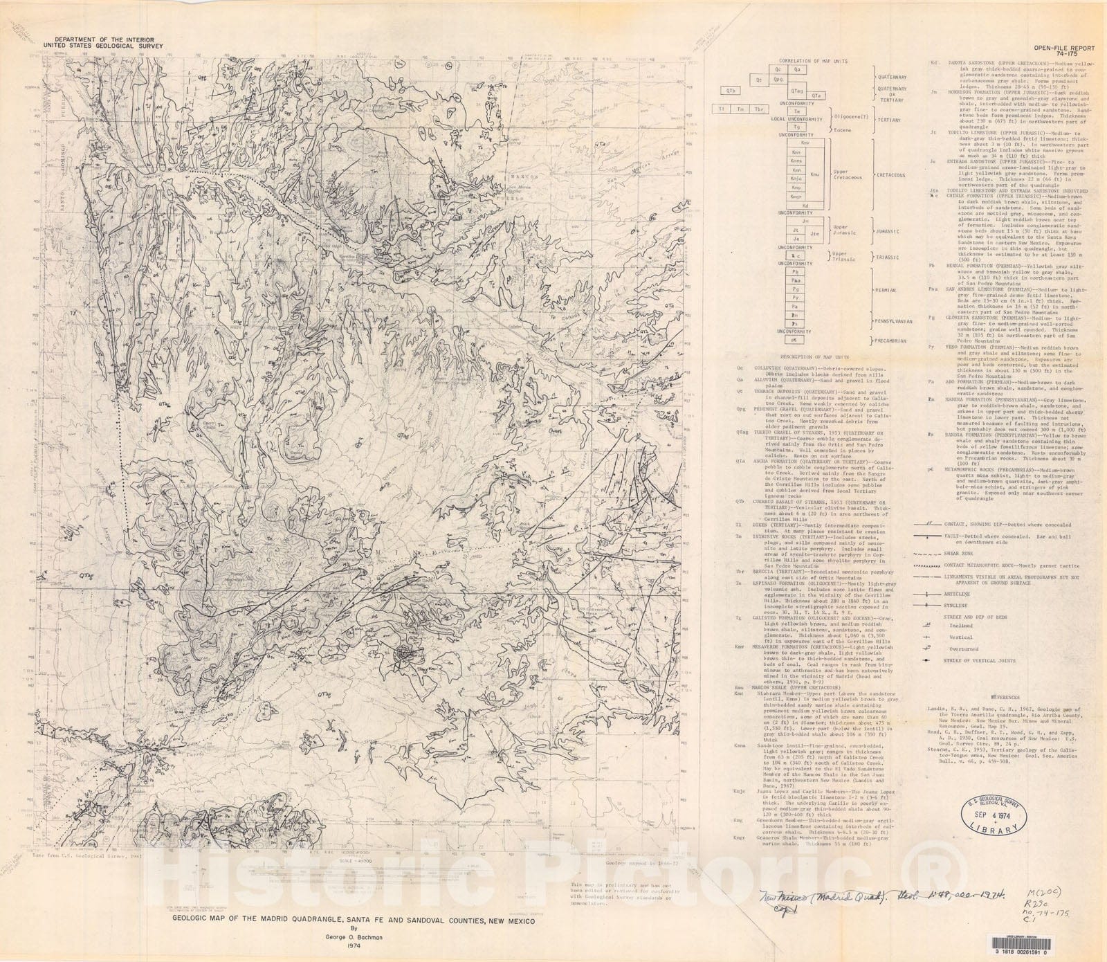 Map : Geologic map of the Madrid quadrangle, Santa Fe and Sandoval Counties, New Mexico, 1974 Cartography Wall Art :