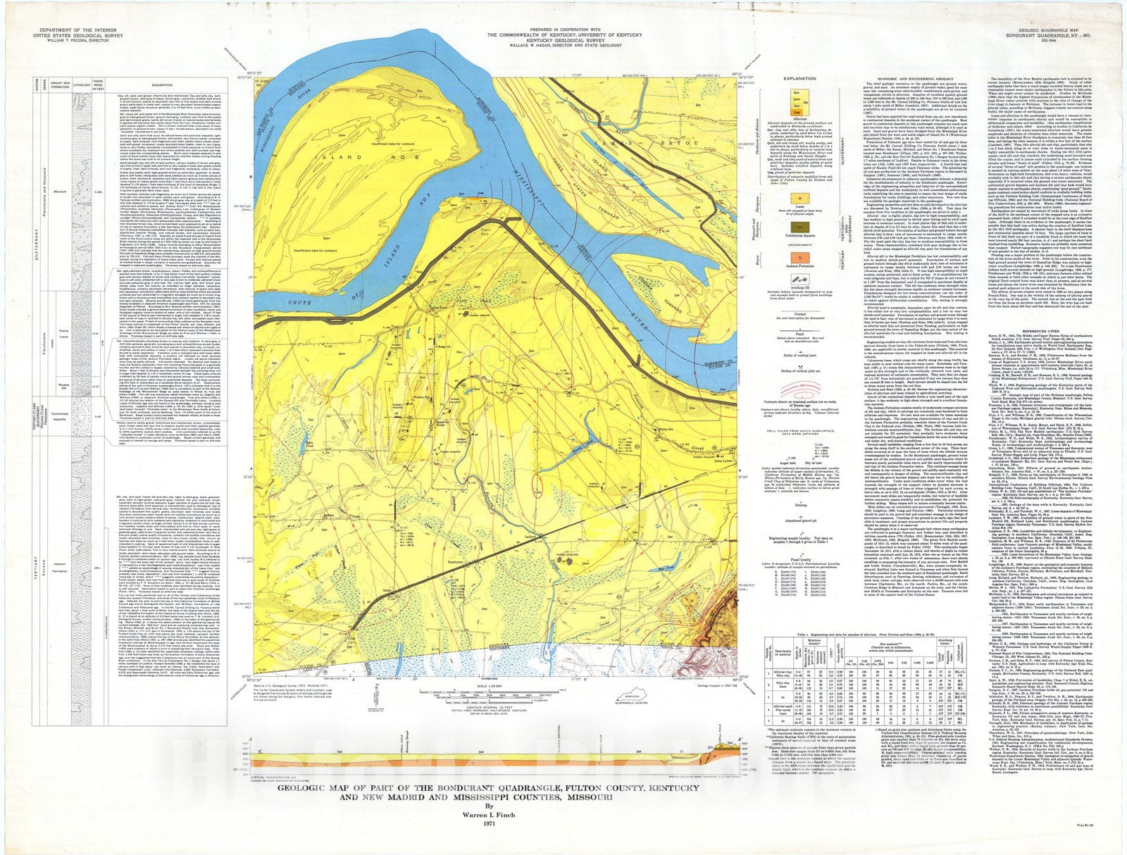 Geologic map of part of the Bondurant quadrangle, Fulton County, Kentucky and New Madrid and Mississippi Counties, Missouri