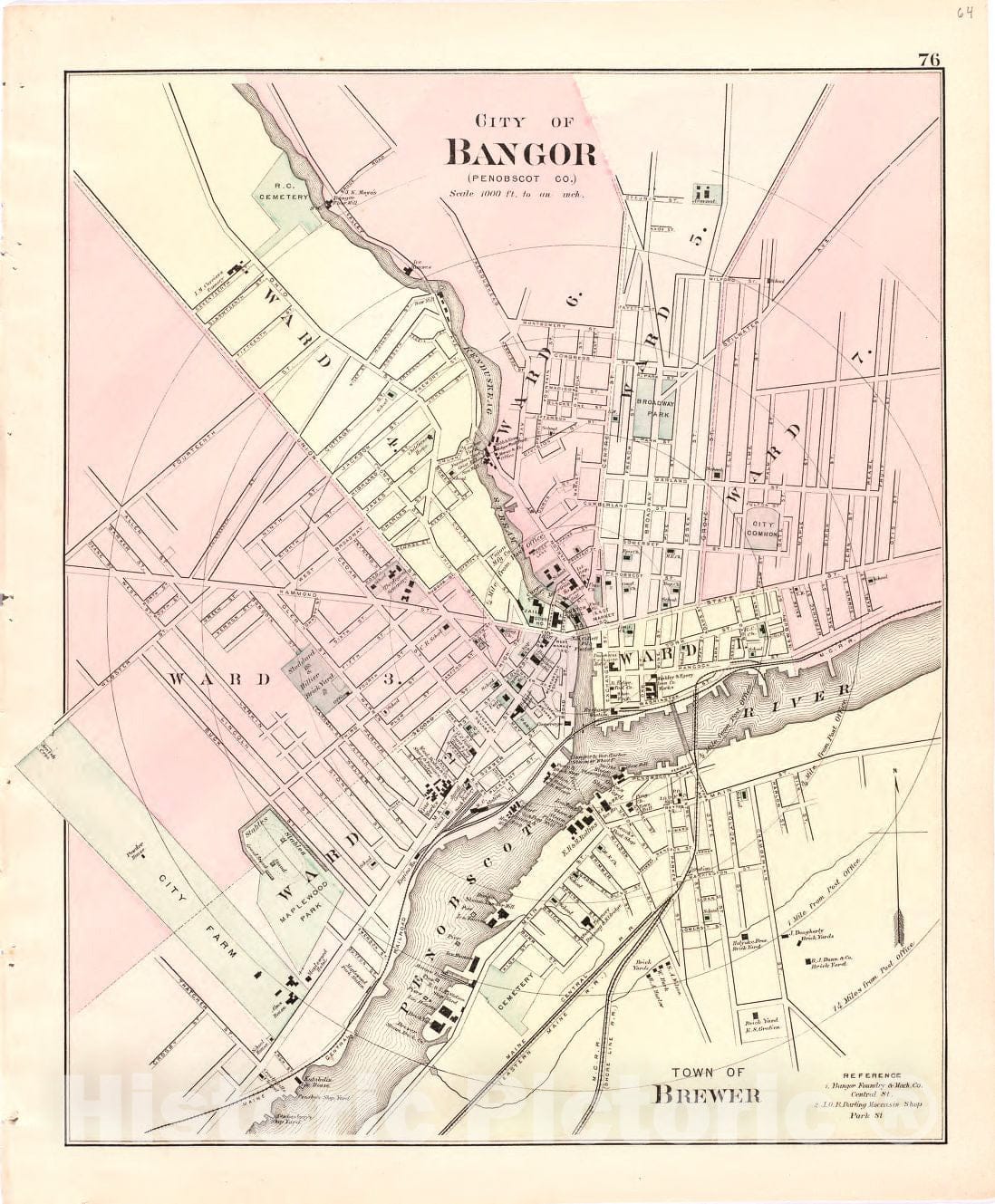 • Historic 1887 Map - Colby's Atlas of The State of Maine - City of Bangor