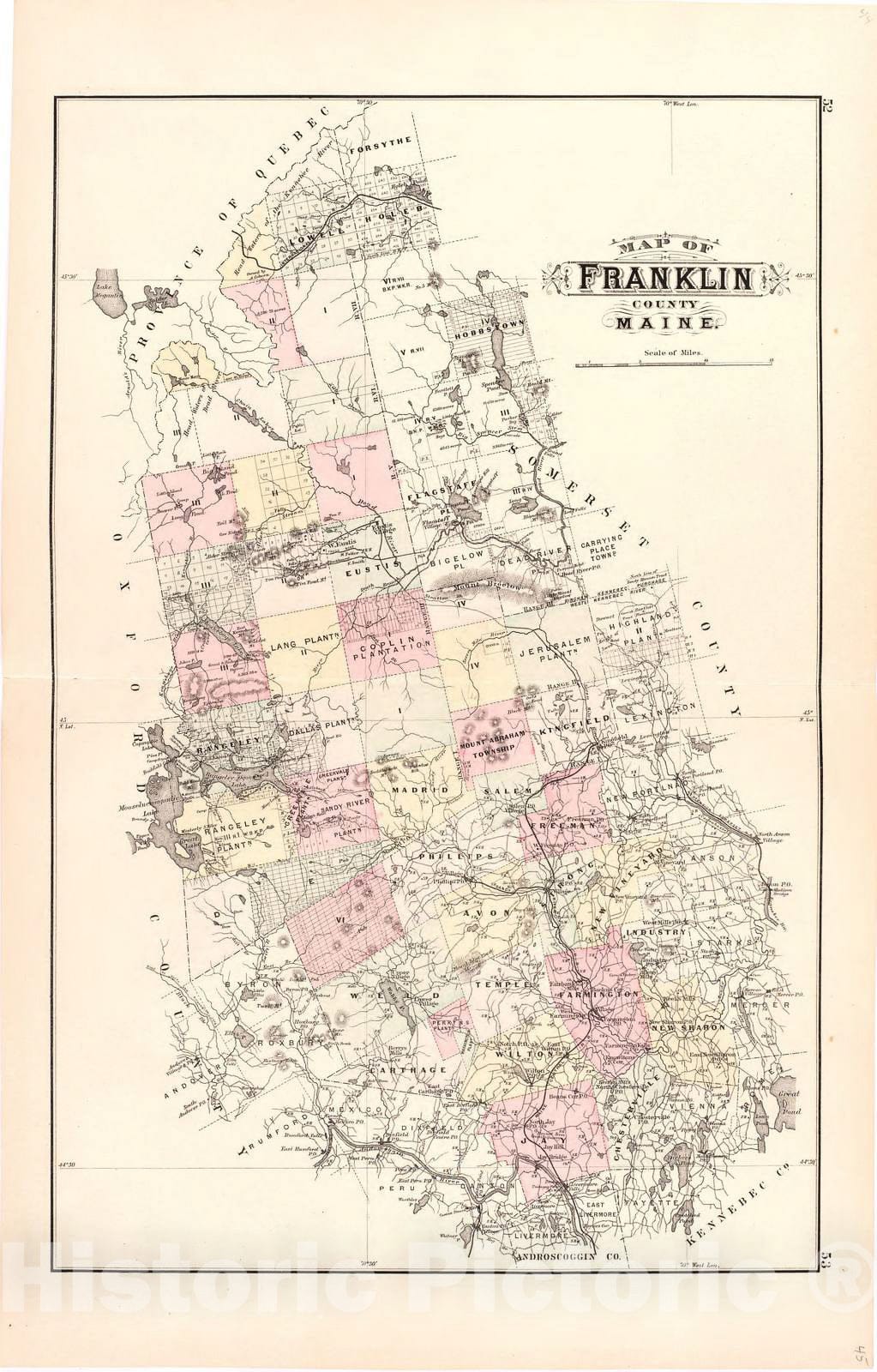 Historic 1887 Map - Colby's Atlas of The State of Maine - Map of Franklin County Maine