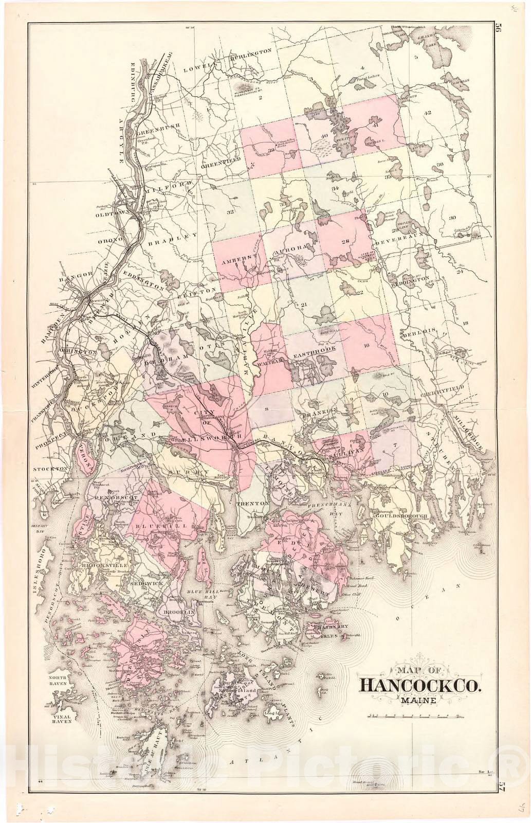Historic 1887 Map - Colby's Atlas of The State of Maine - Map of Hancock Co. Maine