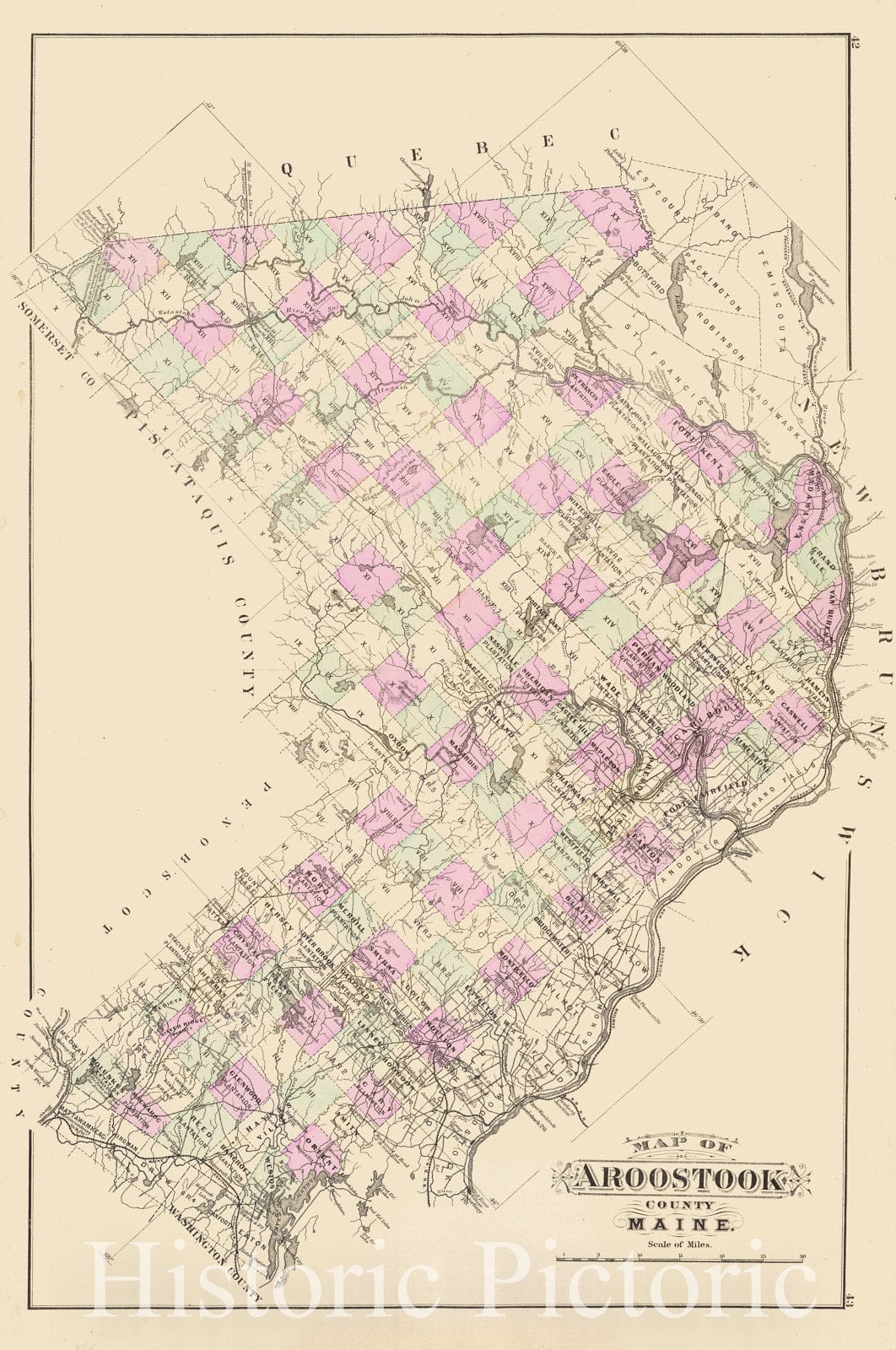 • Historic 1887 Map - Colby's Atlas of The State of Maine - Map of Kennebec County Maine