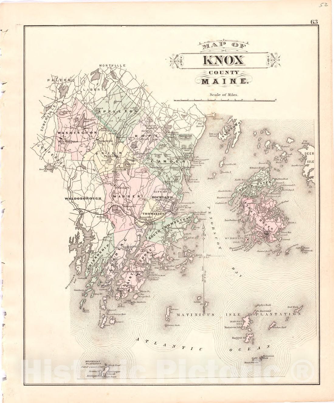 Historic 1887 Map - Colby's Atlas of The State of Maine - Map of Knox County Maine