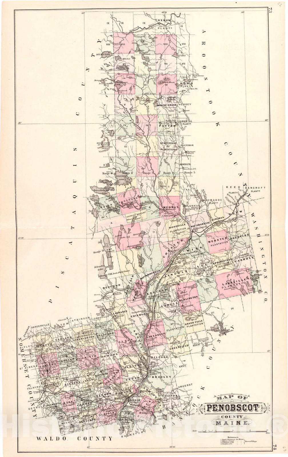 Historic 1887 Map - Colby's Atlas of The State of Maine - Map of Penobscot County Maine