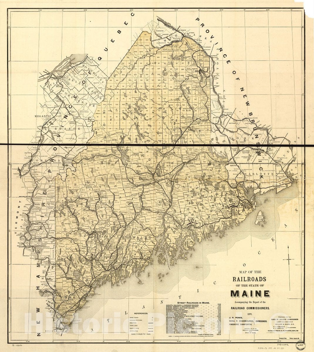 Historic 1899 Map - Map of The Railroads of The State of Maine accompanying The Report of The Railroad commissioners. 1899.
