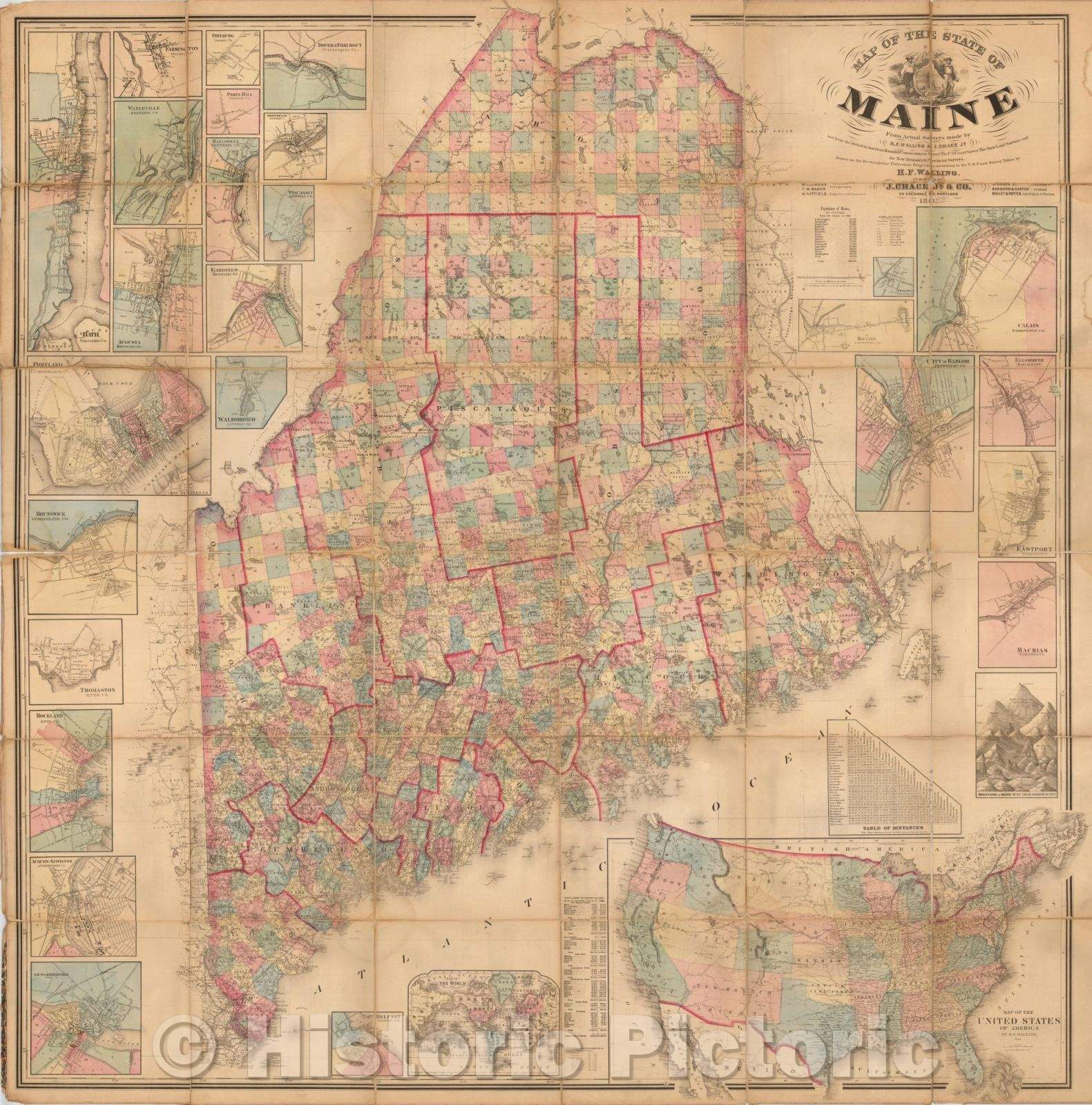 Historic Map - Map of the State of Maine From Actual Surveys made, 1862, Henry Francis Walling - Vintage Wall Art