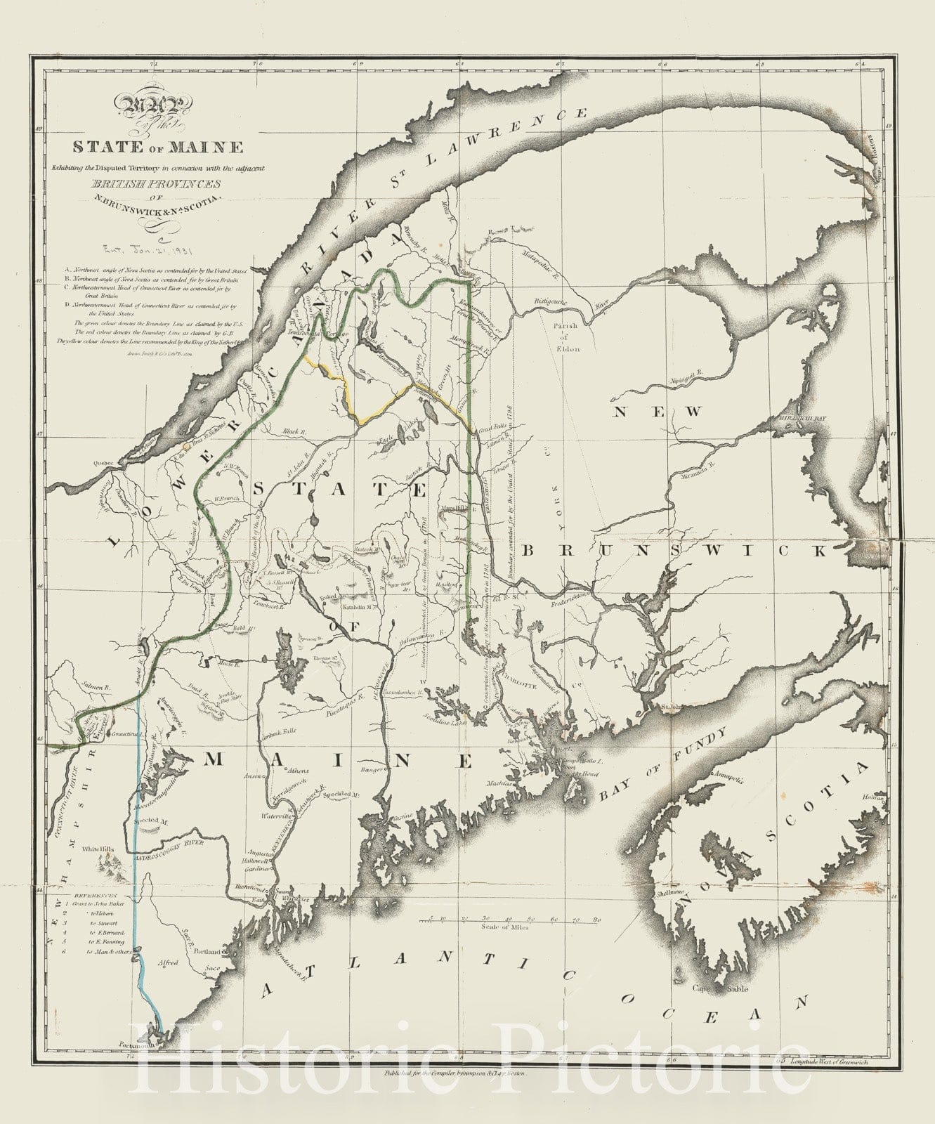 Historical Map, 1834 A map of The New England States : Maine, New Hampshire, Vermont, Massachusetts, Rhode Island & Connecticut, with Parts of New York & Lower Canada, Vintage Wall Art