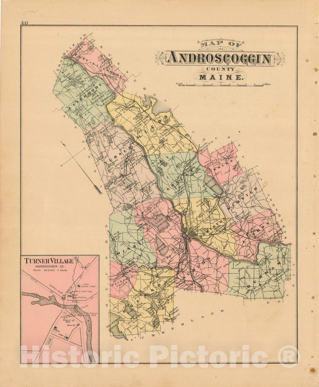 • .Historic Map : Atlas State of Maine, Androscoggin 1894-95 , Vintage Wall Art