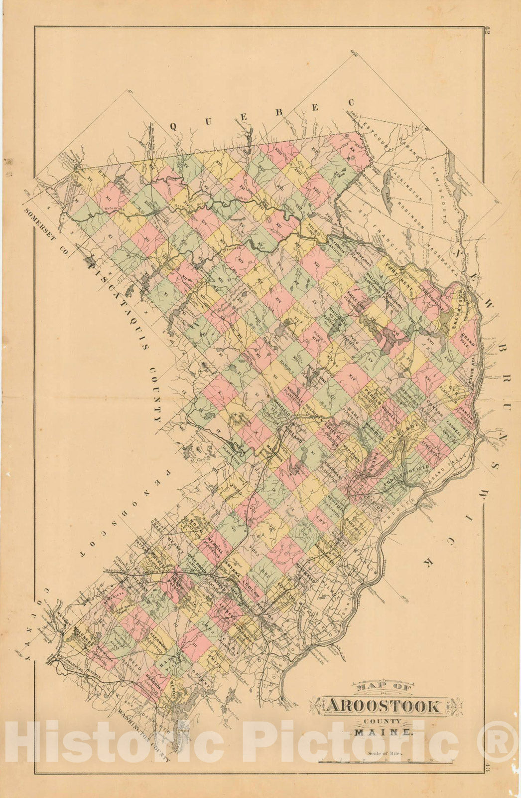 • .Historic Map : Atlas State of Maine, Aroostook 1894-95 , Vintage Wall Art