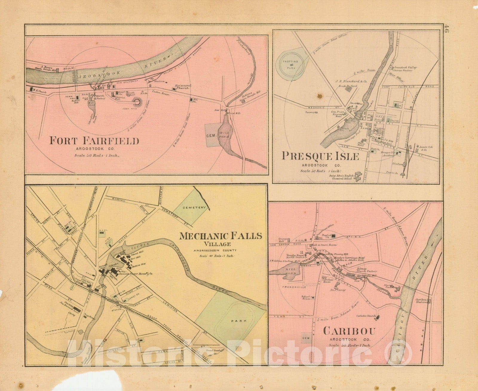 Historic Map : Atlas State of Maine, Caribou & Fort Fairfield & Mechanic Falls & Presque Isle 1894-95 , Vintage Wall Art