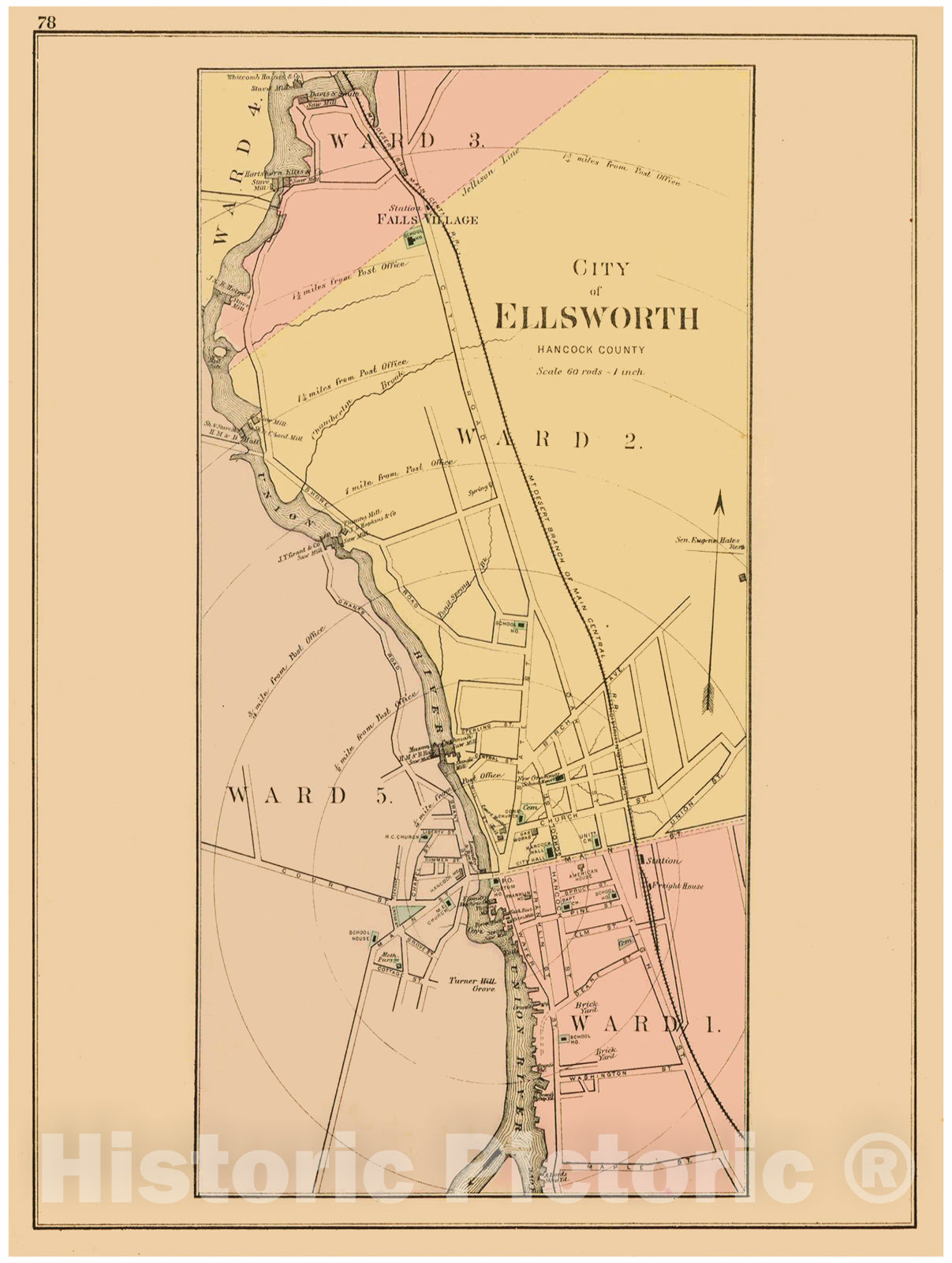 Historic Map : Atlas State of Maine, Ellsworth 1894-95 , Vintage Wall Art