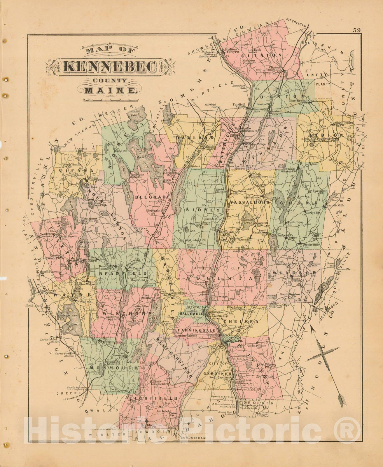 Historic Map : Atlas State of Maine, Kennebec 1894-95 , Vintage Wall Art