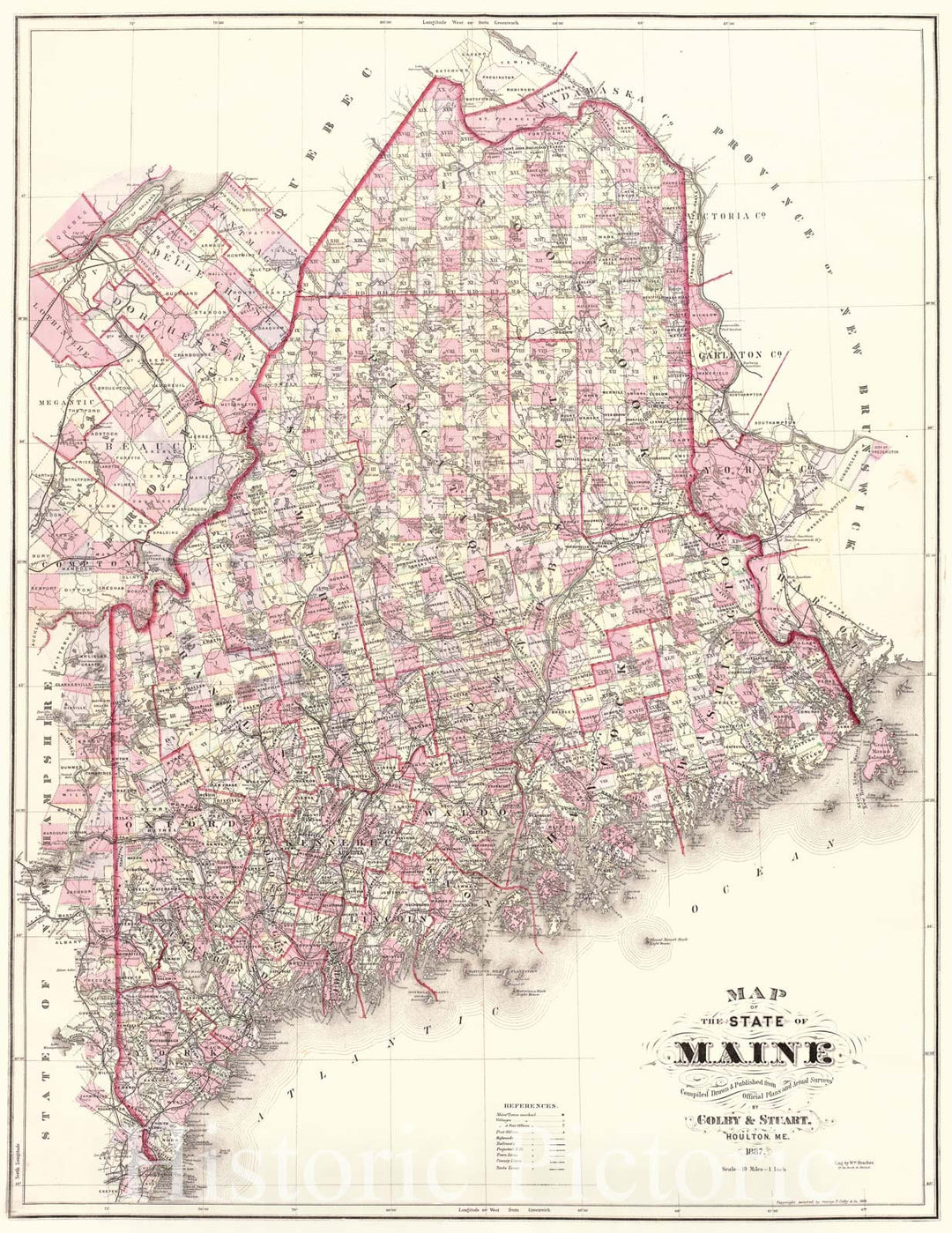 Historic 1887 Map - Colby's Atlas of The State of Maine - Map of The State of Maine