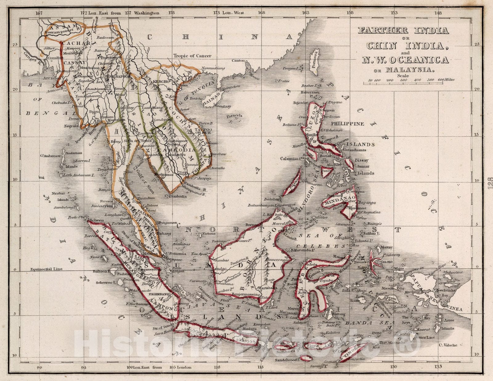 Historic Map : Further India or Chin India and N.W. Oceanica or Malaysia, 1838, Vintage Wall Art