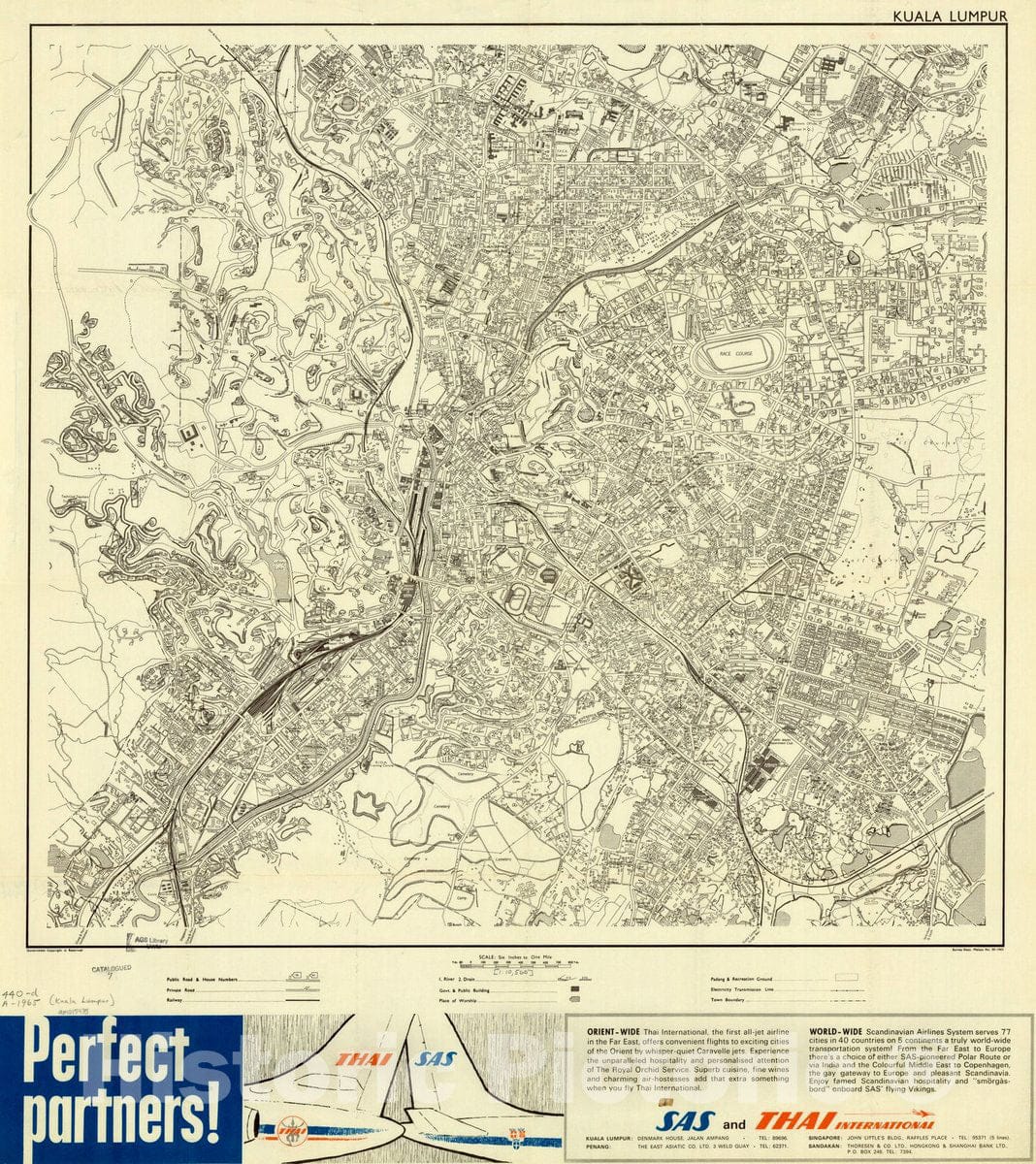Map : Kuala Lumpur, Malaysia 1965, Kuala Lumpur , Antique Vintage Reproduction