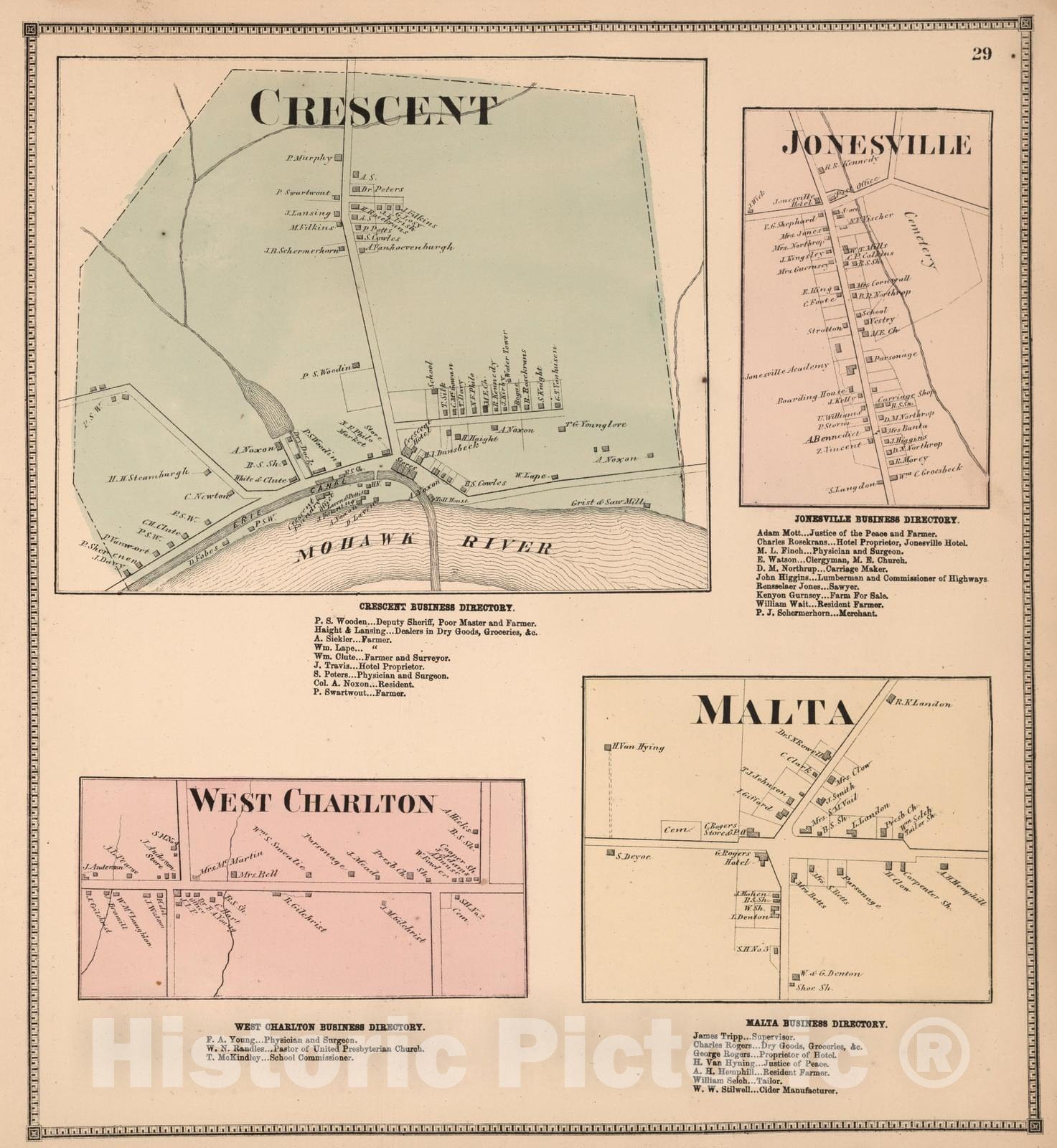 • .Historic Map : 1866 Crescent. Jonesville. West Charlton. Malta, New York. - Vintage Wall Art