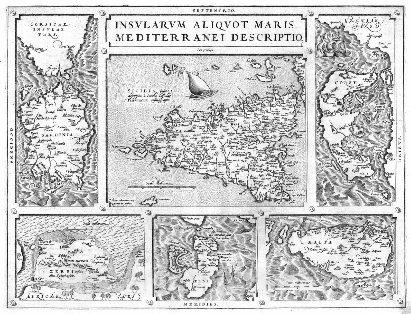 Italy, Sardinia (Italy) 1570 (38) Insularum. Sardinia. Sicilia. Corfu. Zerbi. Elba. Malta. , Vintage Wall Art