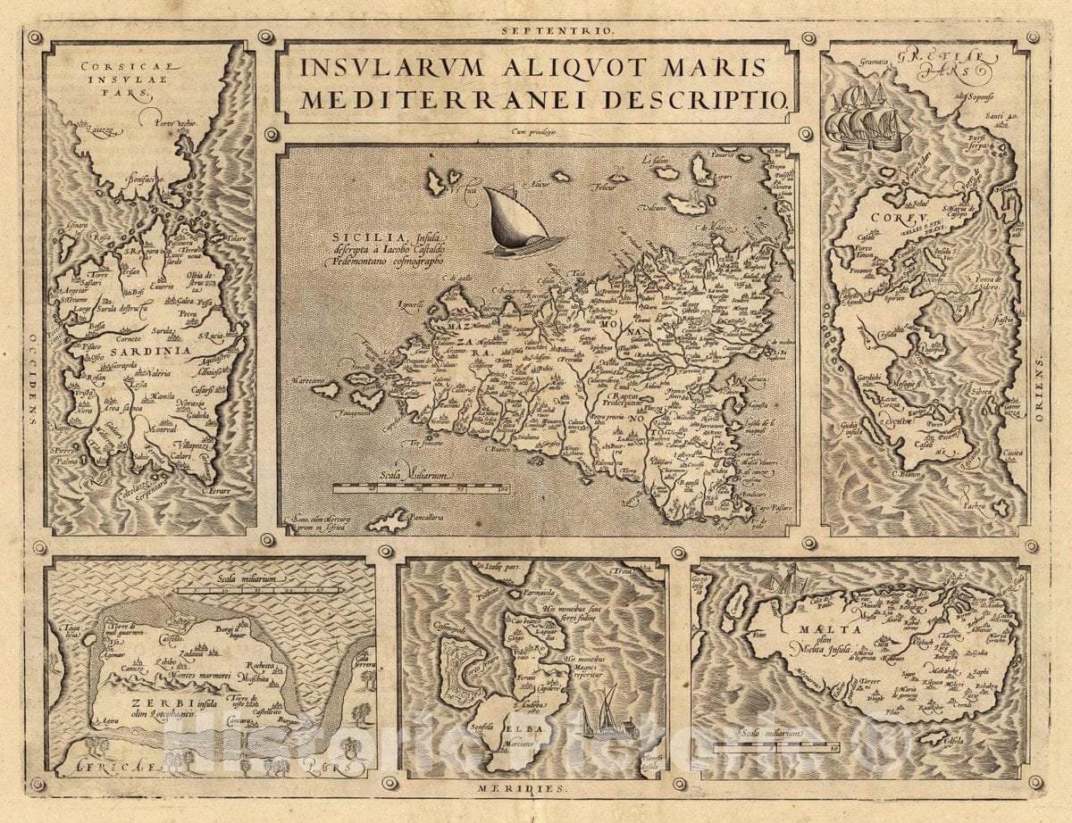 Italy, Sardinia (Italy) (99) Insularum. Sardinia. Sicilia. Corfu. Zerbi. Elba. Malta, 1608 Atlas , Vintage Wall Art