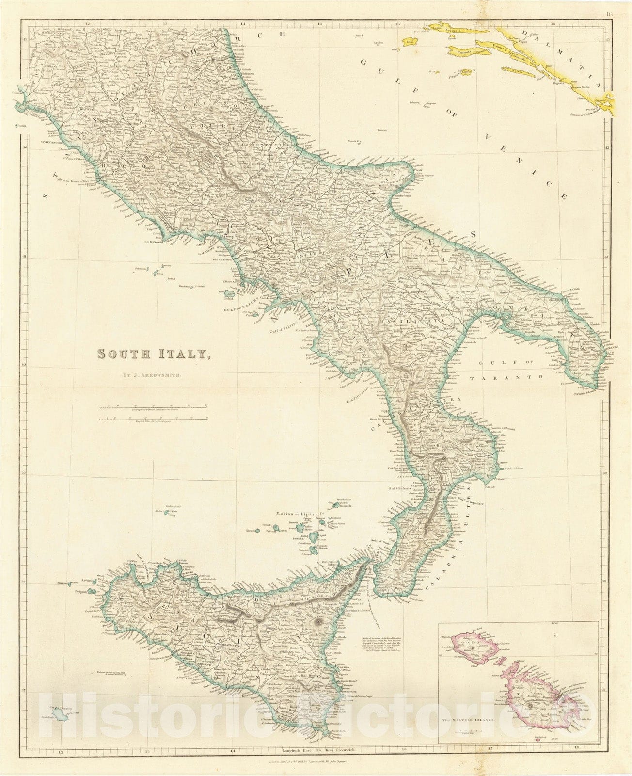 South Italy (with Sicily and Large Malta Inset), 1858, John Arrowsmith
