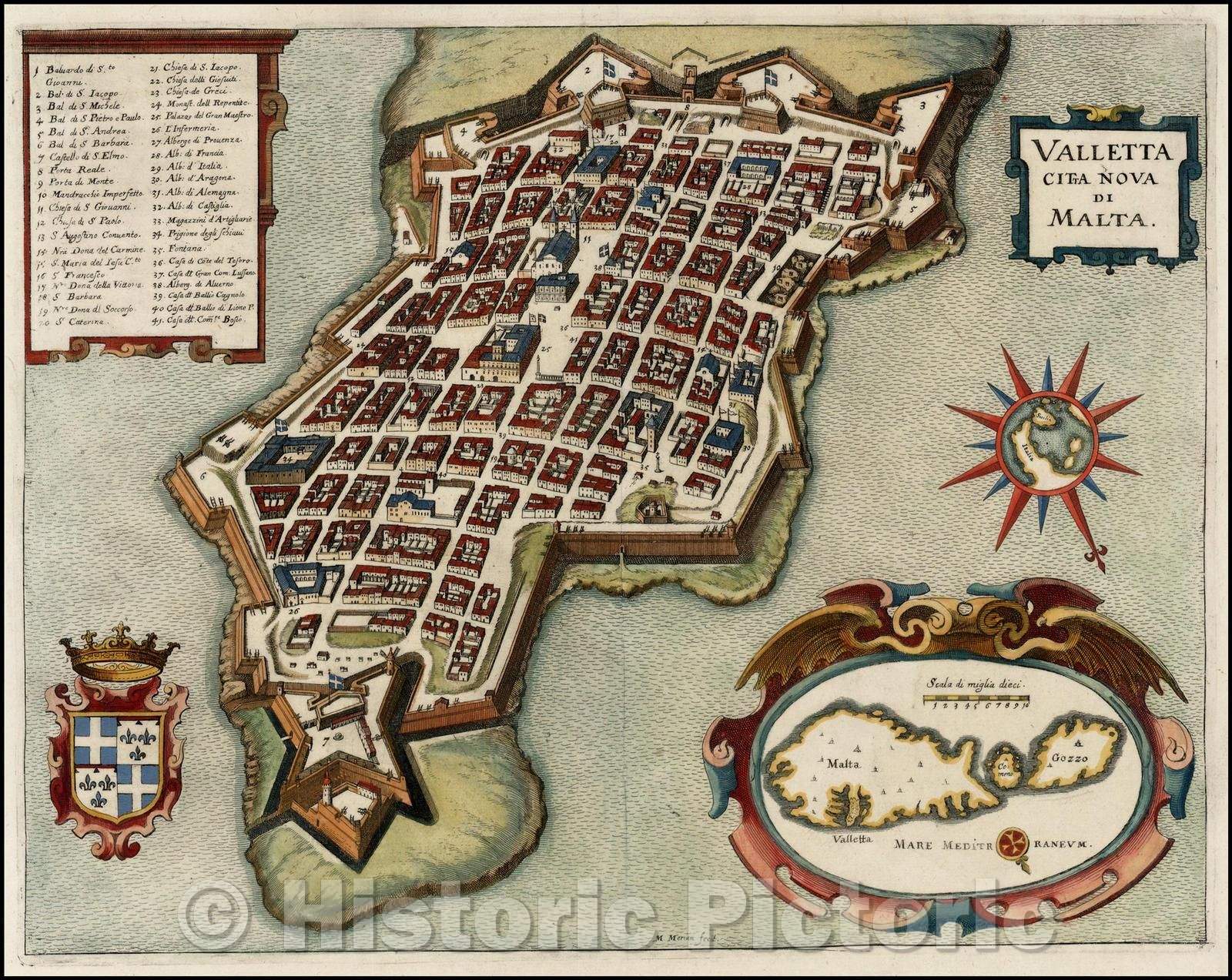 Historic Map - Valletta Citta Nova di Malta/Plan of Valletta, engraved by Isaac Brio, 1636, Matthaus Merian - Vintage Wall Art