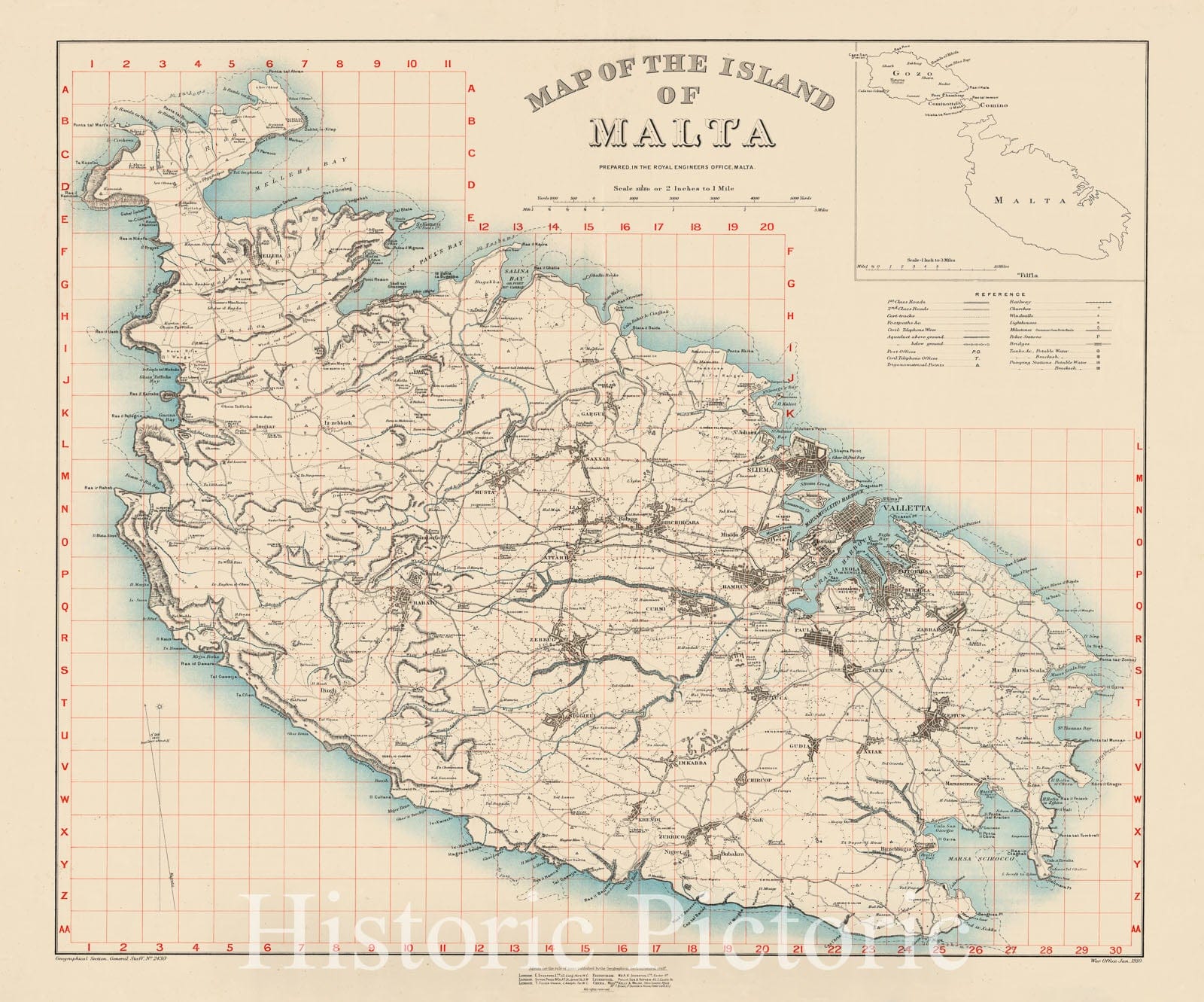 Map : Malta 1910, Map of the island of Malta , Antique Vintage Reproduction
