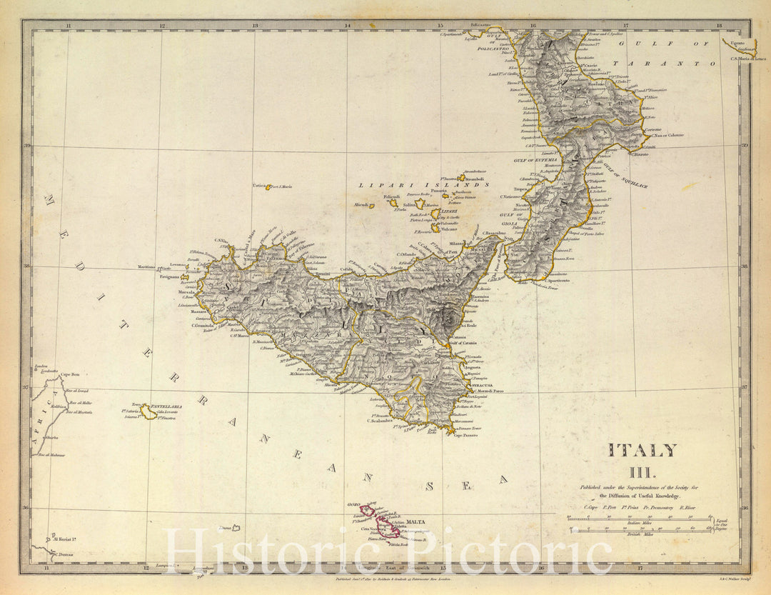 Historic Map : Italy III (Sicily and Malta), 1830, SDUK, Vintage Wall Art