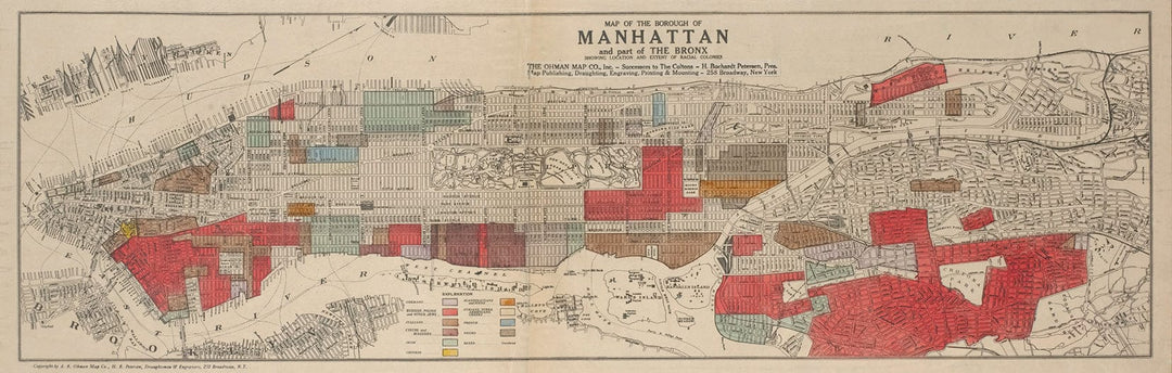 Map of the borough of Manhattan and part of the Bronx showing location and extent of racial colonies