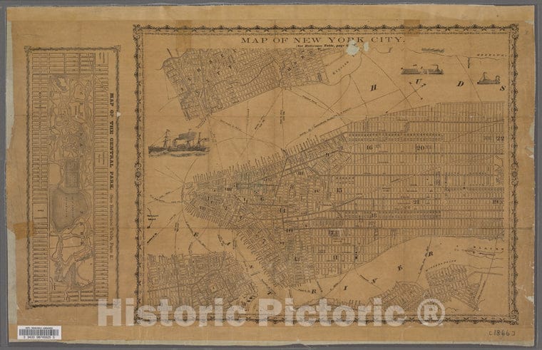 • .Historic 1866 Map - From Visitor'S Guide To The City Of New York.Of New York City And State - Manhattan - Vintage Wall Art