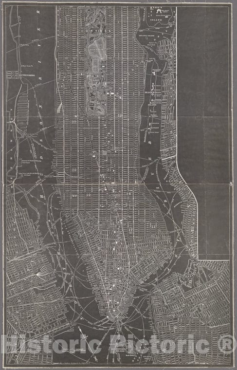 Historic 1884 Map - [Negative Photostat Of] Trow Map, South Of 110Th St.Of New York City And State - Manhattan - Vintage Wall Art