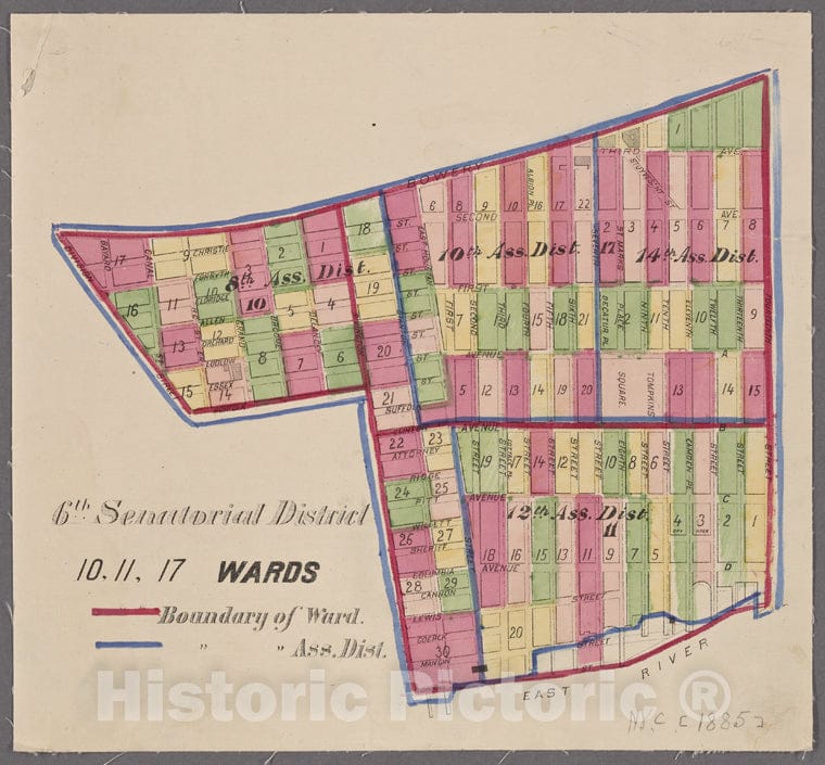 Historic 1885 Map - [Maps Of The 4, 5, 6, 7 & 8 Senatorial Districts Of New York City.] Of New York City And State - Manhattan - Vintage Wall Art