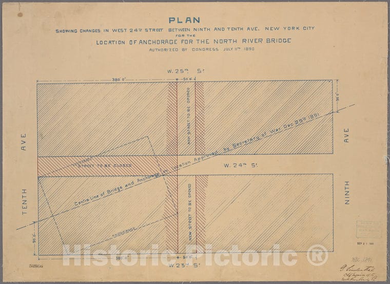 • .Historic 1891 Map - Plan Showing Changes In West 24Th Street Beween Ninth And Tenthof New York City And State - Manhattan - Vintage Wall Art