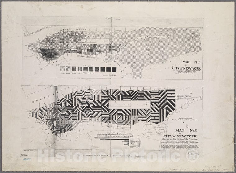 Historic 1894 Map - No. 1 Map Of The City Of New York Showing Densities Of Populatioof New York City And State - Manhattan